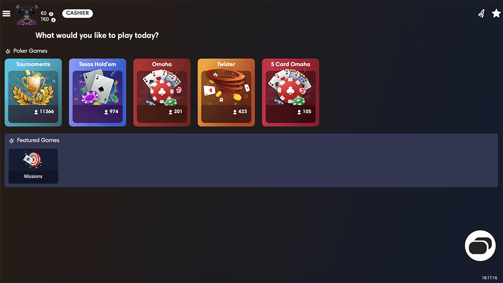 - Cash games in Hold’em, Omaha, and Short Deck (stakes from €0.01/0.02 to €25/50)